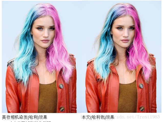 上述过程基本是模拟美妆相机染发算法的过程,给大家参考一下,最后给出本文算法的一些效果举例: