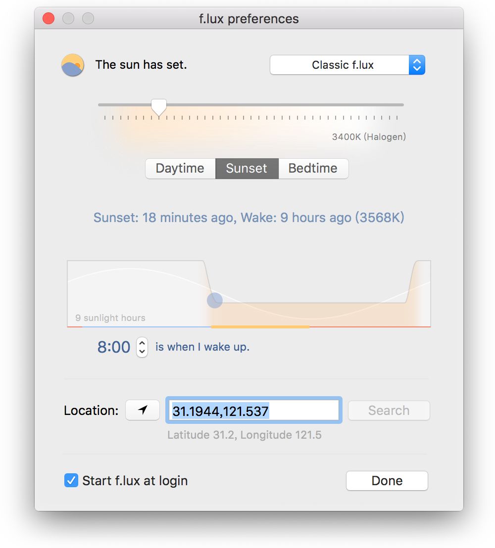 f.lux 并不是单纯把屏幕涂黄,而是根据时间智能地调节屏幕色温,也提供了定制化选项,从而贴近你的实际需求。