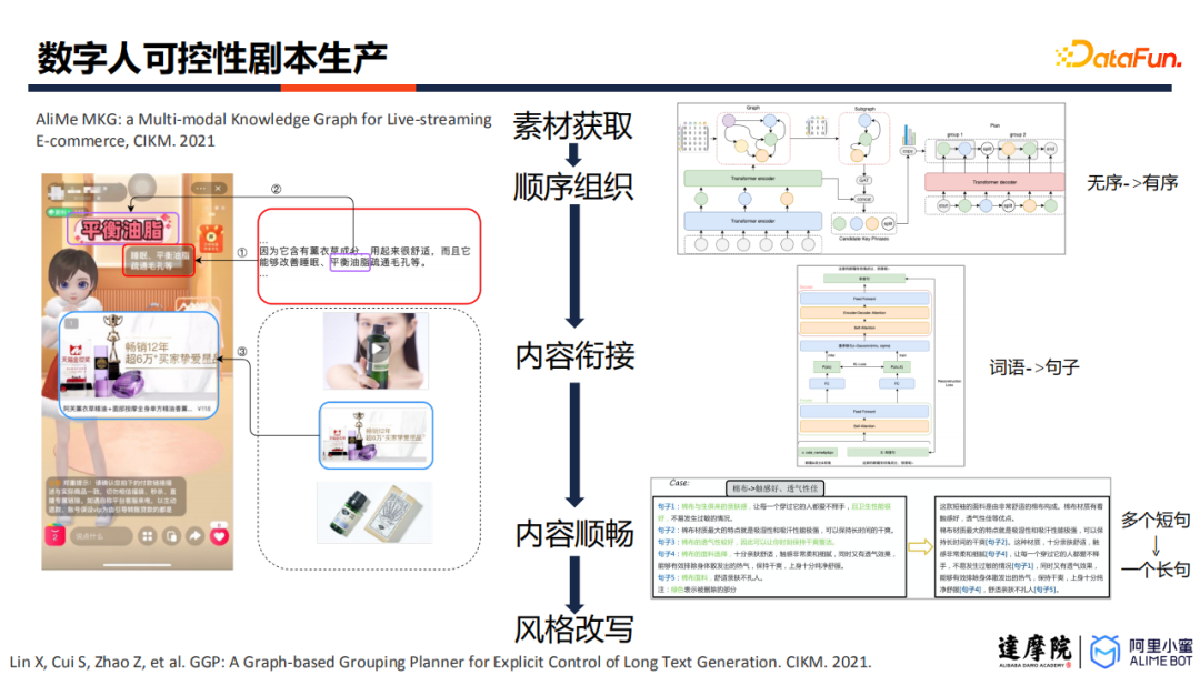 第一个阶段,素材获取。通过淘系以往积累的商品知识图谱,获取商品的销售卖点。
