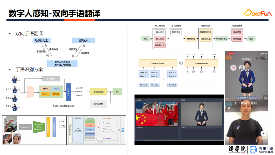 第四部分从可控性直播剧本生产、多模态问答、双向手语翻译、智能行为决策等几个方面,讲解了如何提升数字人的互动能力;