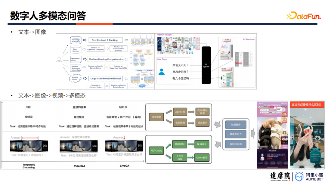 数字人需要结合文本、图像、视频、声音、动作等多个模态提供回答,就需要解决用户问题理解、多模态素材理解,以及二者之间的匹配对齐问题。相关技术在之前文章中有很多涉及,大家也可以关注后续的阿里数字人小蜜多模态交互/问答专题,这里就不再赘述。