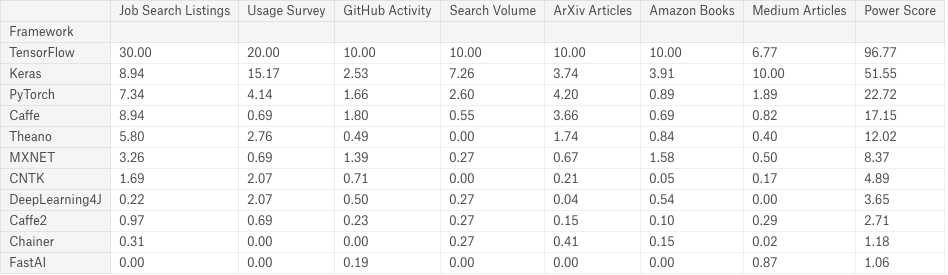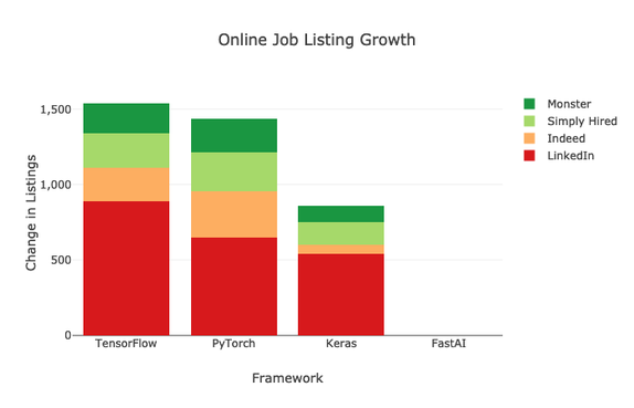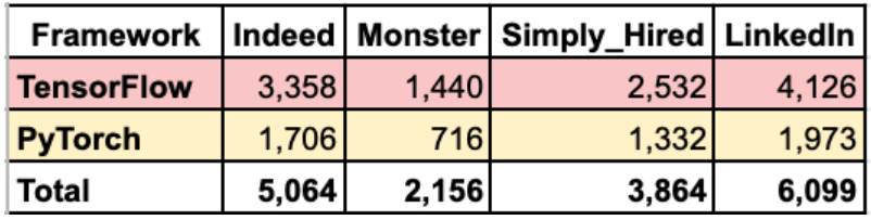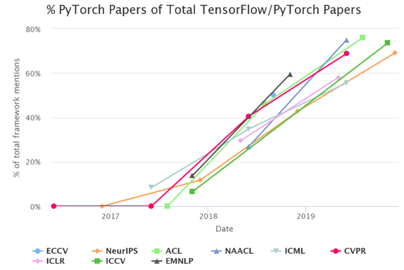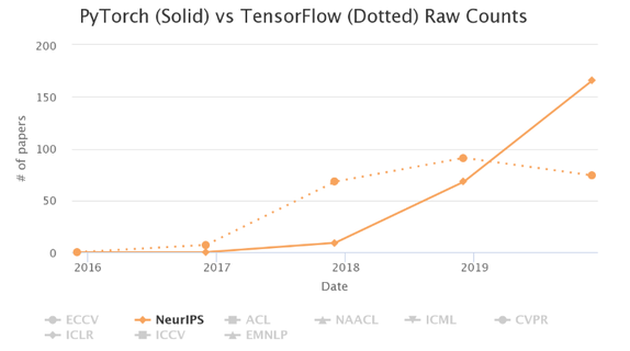 几天前,OpenAI 通过官方博客宣布了「全面转向 PyTorch」的消息,计划将自家平台的所有框架统一为 PyPyTorch。这一消息再次引发了社区关于两个框架优劣的讨论。作为后起之秀,PyTorch 真的已经全面赶超 TensorFlow 了吗?为了研究这个问题,数据科学家 Jeff Hale 从在线职位数量、顶会论文中的出现次数、在线搜索结果、开发者使用情况四个方面对两个框架的现状进行了调研。