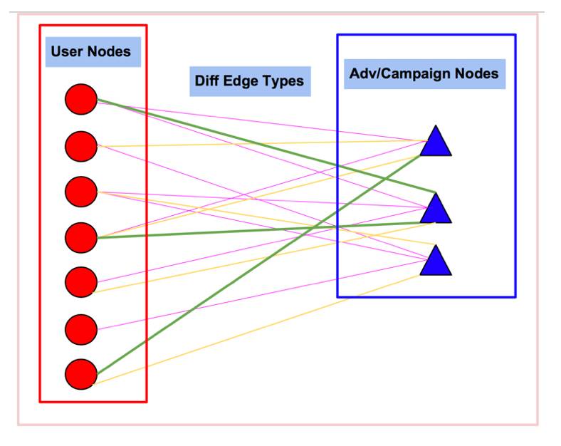 我们首先把问题抽象成二分图: user nodes & adv/campaign nodes,