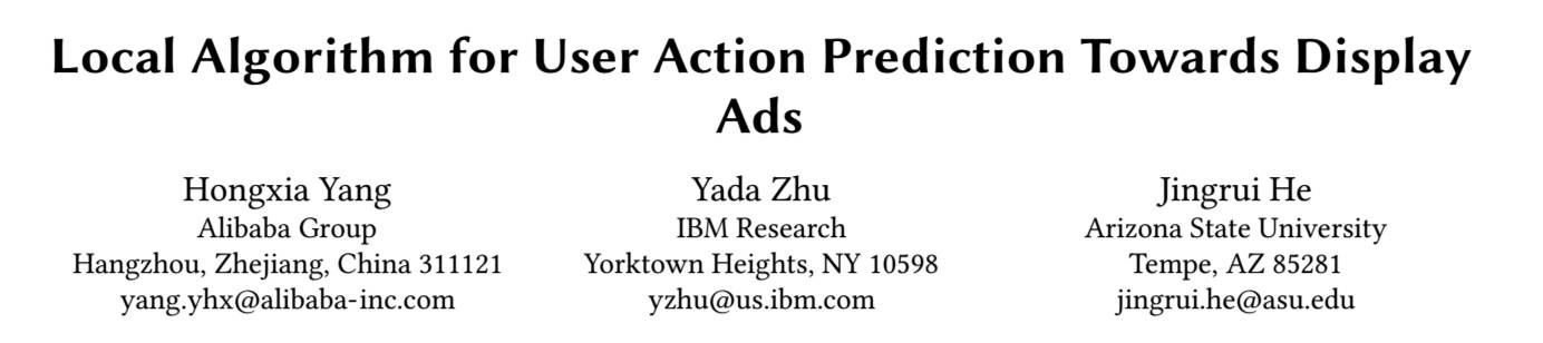 本文介绍了阿里被 KDD 2017 接收的论文《Local Algorithm for User Action Prediction Towards Display》。