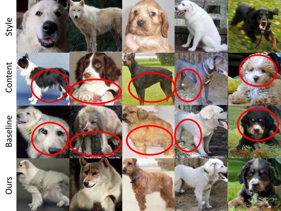 简单来说,就是输入一只金毛,在训练过程当中,即便第一次看到一种新动物,也能让它像金毛那样吐舌头、闭嘴巴、歪头。