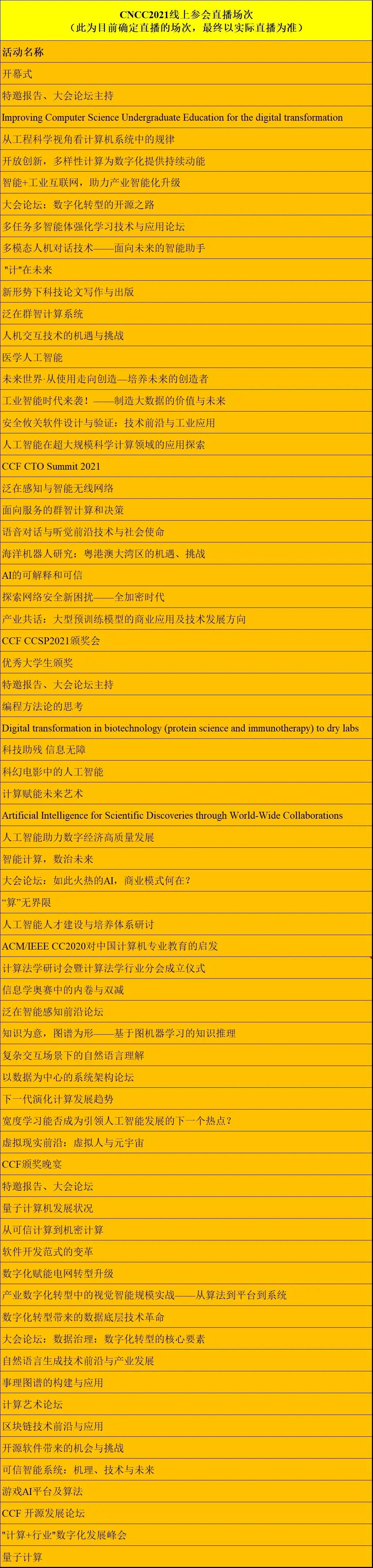 CNCC2021即将在12月16日于深圳隆重举办,按照原计划,已有近万名参会者完成了注册报名,但由于疫情防控需要,我们最终决定将现场参会者控制在5000人。为了让更多专业人士能从大会中获益,我们已开通线上参会通道,加大投入,精心筹备,力求将现场参会的体验完美延伸到线上,让线上和现场的参会者一道共享CNCC专业盛宴!