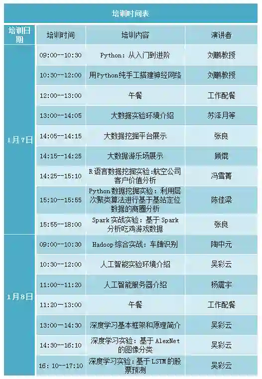 2018年举办的第二届全国高校大数据人工智能师资实战免费培训班连续举办3期,且收获颇多好评。2019全国高校大数据人工智能师资实战免费培训班(1期)名额也已经被抢占完毕!为给更多老师提供大数据人工智能的学习机会,云创大数据决定于2019年1月7-8日加开第2期,欢迎报名参加!