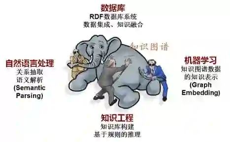 总的来说,知识图谱是一项交叉研究领域;计算机的不同学科都从不同的角度对知识图谱这个领域进行了研究工作。图16展示这样的一种多学科交叉研究的状况。前三章主要是从数据库和数据管理的角度对知识图谱的研究内容进行了介绍,下面分别从自然语言处理,知识工程和机器学习领域分别简单介绍这几个领域对知识图谱研究的目前的热点。