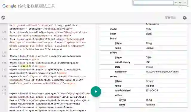 图6.Google结构化抽取工具所抽取出来的“Walmart产品页面”上的结构化数据