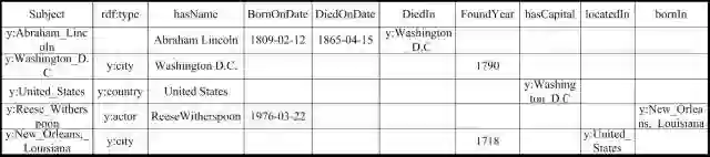 由于RDBMS(关系数据库管理系统)在数据管理方面的巨大成功以及成熟的商业软件产品,同时RDF数据的三元组模型可以很容易映射成关系模型,因此大量研究者尝试了使用关系数据模型来设计RDF存储和检索的方案 [4,5,6]。根据所设计的表结构的不同,相应的存储和查询方法也各异,下面介绍几种经典的方法。