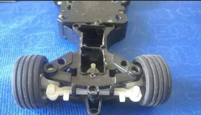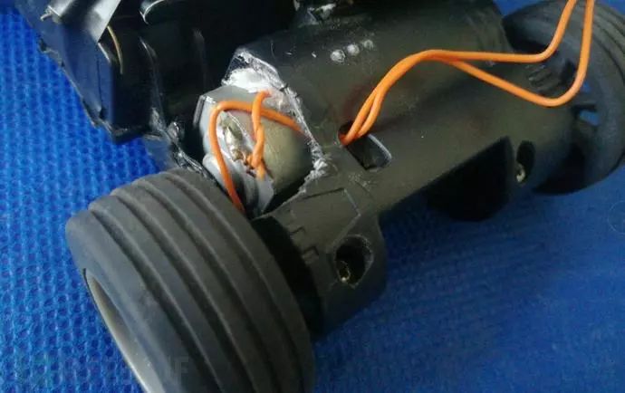 由于航模电机长了一节,是不可能盖严了,把盖住电机屁股的那一块用烙铁抹掉。