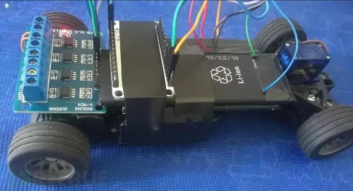 思路:nodemcu接入wifi同时根据指令控制舵机,通过给电机驱动板不同的高低电平,使舵机驱动板驱动马达。