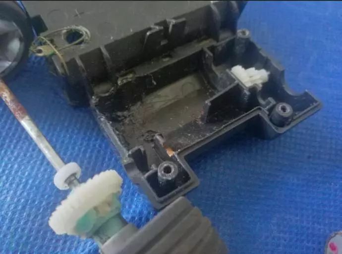 清理干净,电池盒的盖子什么的掀飞。不平的地方用烙铁抹平。
