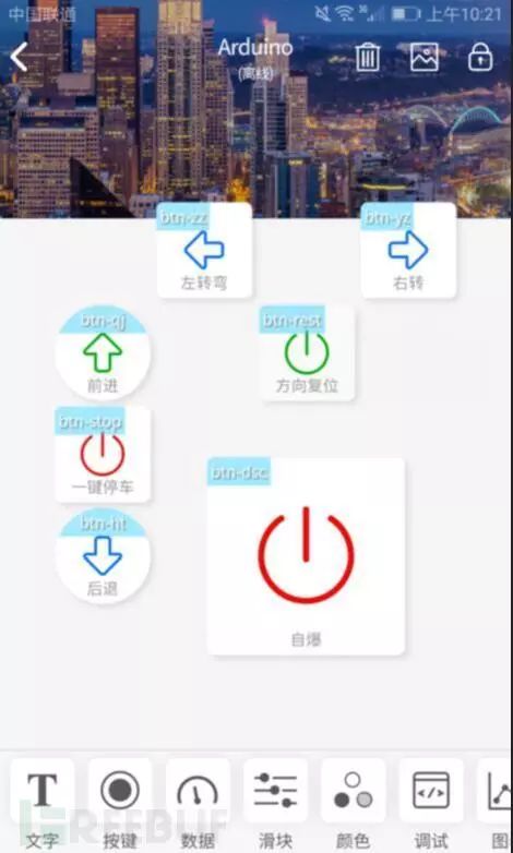 Servo myservo;//向右转void right(){int pos = 0;//舵机端口号myservo.attach(D1);for(pos = 0; pos <= 180; pos += 3){myservo.write(pos);delay(10);}myservo.write(180);delay(200);}//向左转void left(){int pos=100;myservo.attach(D1);for(pos = 100; pos >= 0; pos -= 3){myservo.write(pos);delay(10);}myservo.write(0);delay(200);}//复位void rest(){myservo.attach(D1);myservo.write(100);delay(200);}char auth[] = "b8b8d0568edb";char ssid[] = "LookCos";char pswd[] = "123456789";// 前进后退,左转右转BlinkerButton Button1("btn-qj");BlinkerButton Button2("btn-ht");BlinkerButton Button3("btn-zz");BlinkerButton Button4("btn-yz");//方向复位按键BlinkerButton Button5("btn-rest");//停车BlinkerButton Button6("btn-stop");BlinkerNumber Number1("num-abc");int counter = 0;// 前进void button1_callback(const String & state) {BLINKER_LOG("get button state: ", state);digitalWrite(D3, HIGH);digitalWrite(D2, LOW);}// 后退void button2_callback(const String & state) {BLINKER_LOG("get button state: ", state);digitalWrite(D2, HIGH);digitalWrite(D3, LOW);}// 左转void button3_callback(const String & state) {BLINKER_LOG("get button state: ", state);left();}// 右转void button4_callback(const String & state) {BLINKER_LOG("get button state: ", state);right();}// 方向复位void button5_callback(const String & state) {BLINKER_LOG("get button state: ", state);rest();}//停车void button6_callback(const String & state) {BLINKER_LOG("get button state: ", state);rest();digitalWrite(D2, LOW);digitalWrite(D3, LOW);}// 如果未绑定的组件被触发,则会执行其中内容void dataRead(const String & data){BLINKER_LOG("Blinker readString: ", data);counter++;Number1.print(counter);}void setup() {// 初始化串口Serial.begin(115200);int QQ_GROUP = 8805926;BLINKER_DEBUG.stream(BLINKER_PRINT);pinMode(D2, OUTPUT);pinMode(D3, OUTPUT);// 初始化blinkerBlinker.begin(auth, ssid, pswd);Blinker.attachData(dataRead);//前后左右Button1.attach(button1_callback);Button2.attach(button2_callback);Button3.attach(button3_callback);Button4.attach(button4_callback);//方向复位Button5.attach(button5_callback);//停车Button6.attach(button6_callback);}void loop() {Blinker.run();}