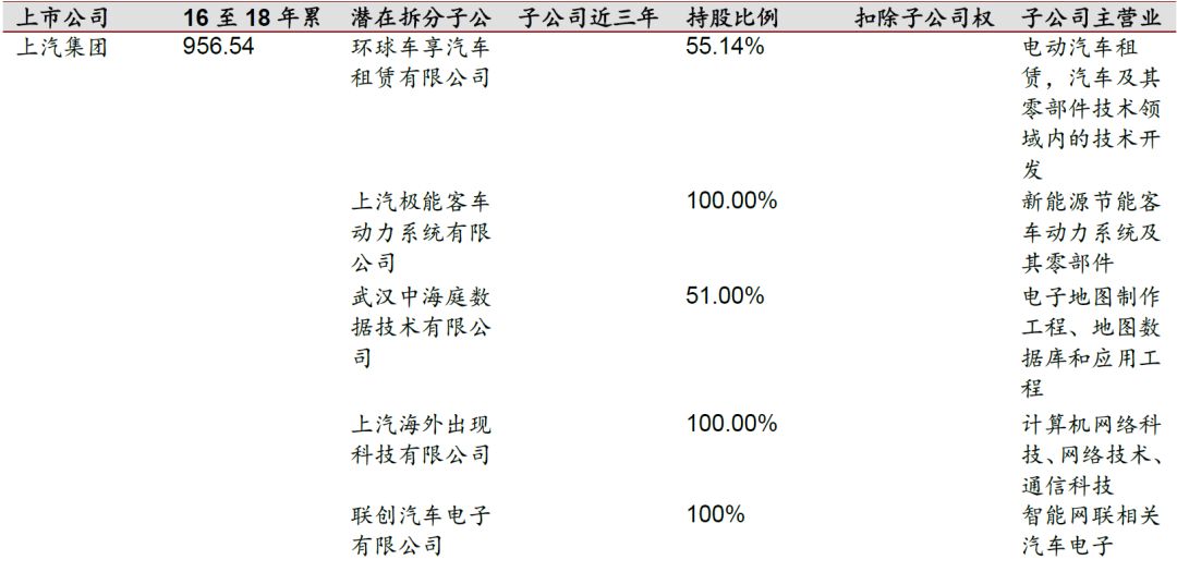 考虑以上硬性标准和母公司的分拆意愿,选出更具成长潜力、高技术含量、高估值的子公司作为潜在分拆标的,得到符合条件的上市公司共10家。