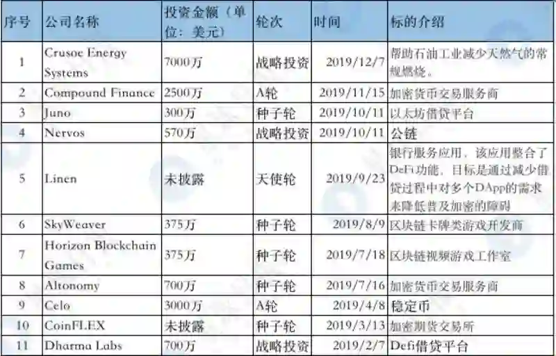 另外从梳理中也可以发现,Defi 借贷项目 BlockFi、Juno、Dharma 获得上述所列举的多家主流加密基金青睐,说明 Defi 是机构投资者抢滩的重要赛道。