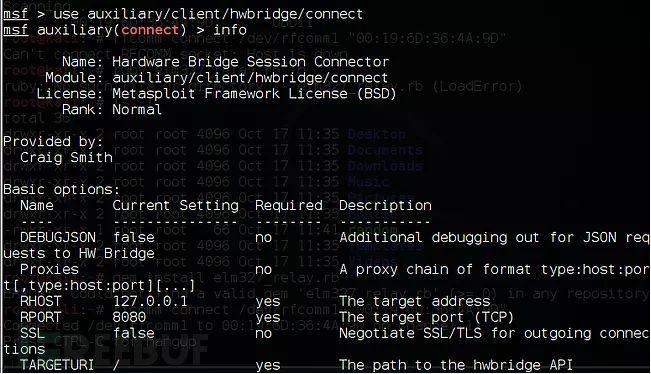 我们选择使用auxiliary/client/hwbridge/connect模块。