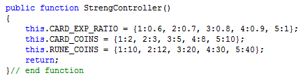 以卡牌/符文强化为例,每张卡牌都对应着一定的升级金币和经验点数,每张符文也有对应的经验点数,这是每张卡牌固有的属性。当你升级的时候,是将被升级卡牌的金币和经验乘以一个系数进行累加,然后再计算被升级卡牌、符文的升级情况的。