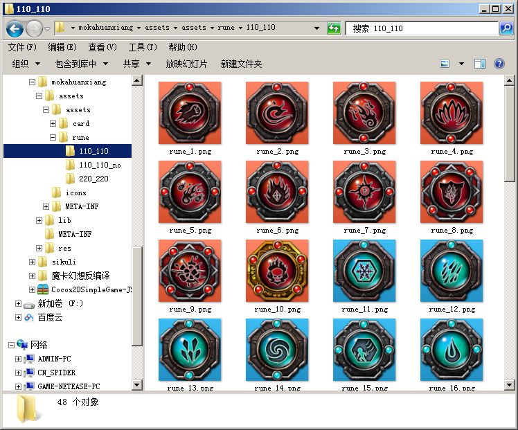 先看第一个文件夹,assets下面有两个文件夹,一个是卡牌的底图,一个是符文的底图,如下: