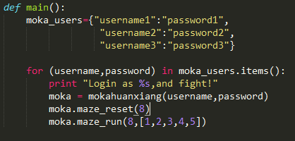 这段代码既可完成对我三个账号的第8塔的1~5层进行刷塔。