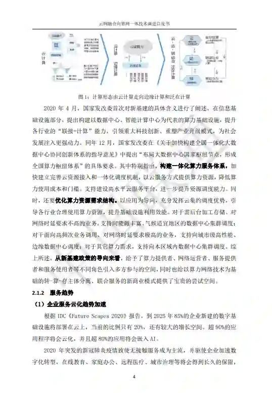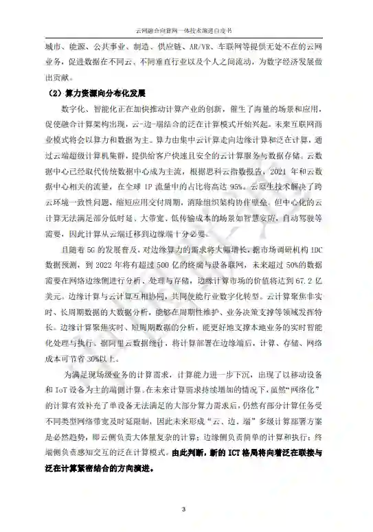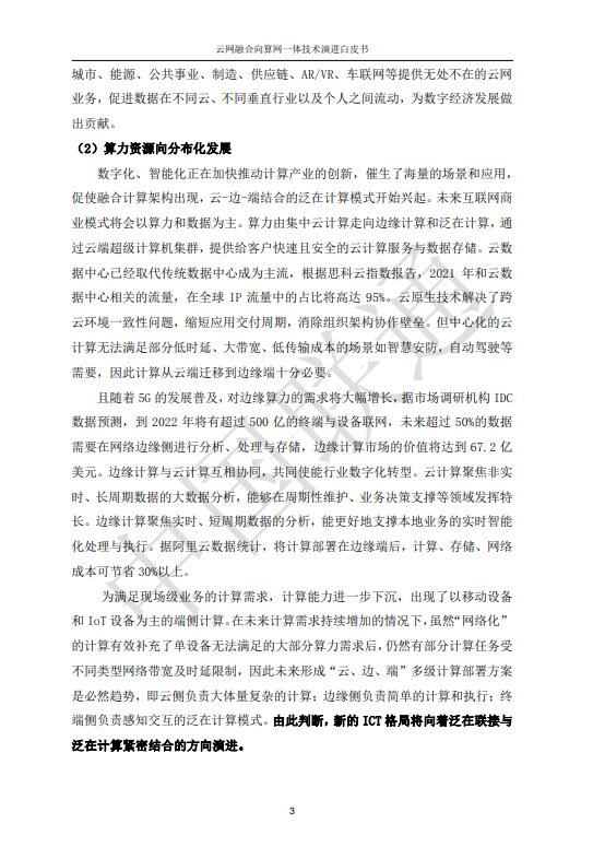 希望本白皮书在云网融合向算网一体演进的技术路线,关键能力等方面为行 业发展起到抛转引玉的作用,旨在推动网络与计算深度融合,构建面向未来的算 网一体化服务新格局。