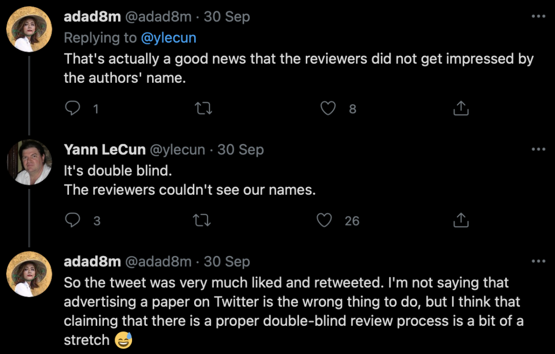 那么这次LeCun的论文被拒稿,到底是不是评审人成功地遵守了「双盲」的原则呢?