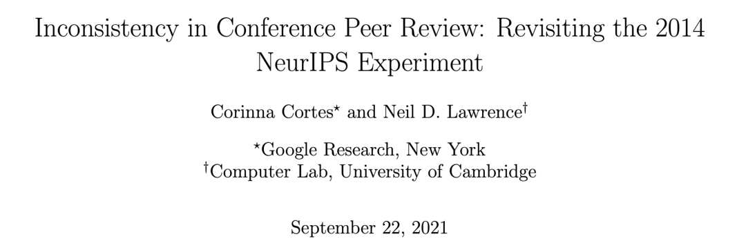 最近正好有一篇由谷歌和剑桥大学的研究人员撰写的关于NeurIPS 2014同行评审结果的研究。
