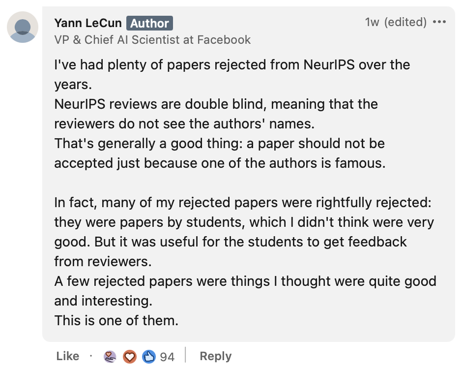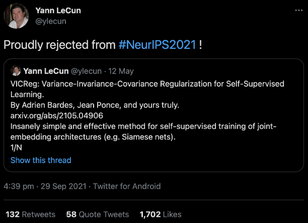 reddit.com/r/computerscience/comments/q0j4vh/yann_lecuns_paper_gets_rejected_from_neurips_2021/hf8nvvv/