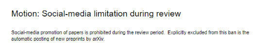 在审查期间,禁止在社交媒体上宣传论文。被排除在这一禁令之外的是 arXiv 自动发布的新预印本。