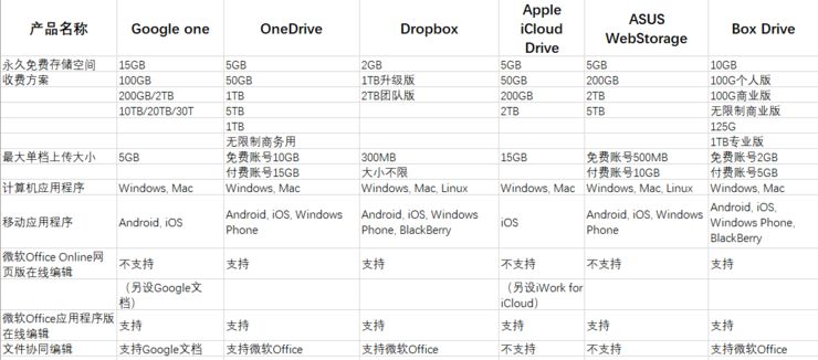 雷锋网搜集了主要云存储玩家及各家永久免费存储空间: