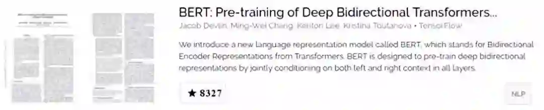 Google AI的BERT论文在10月份引起了深度学习界的关注。本文提出了一种深度双向编码器模型,该模型可实现11种NLP任务的最先进性能,包括斯坦福问答(SQUAD)数据集。 Google AI开源了他们论文的代码,这是深度学习库类别中,获得最多的“星星”的开源代码。