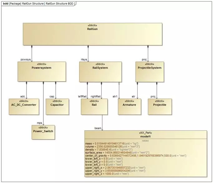 本文的目的是展示如何组合一些工具来协作设计一款新的武器系统——电磁轨道炮(electromagnetic railgun)。使用的技术和工具有:SysML架构建模(MagicDraw或Rhapsody)、基于物理的分析(Mathematica和Simulink)、机械CAD (NX)和需求管理(Jama)。这些工具由两个Intercax工具连接起来——MBSE平台Syndeia和参数解决方案ParaMagic (用于MagicDraw) 和Melody (用于Rhapsody)。
