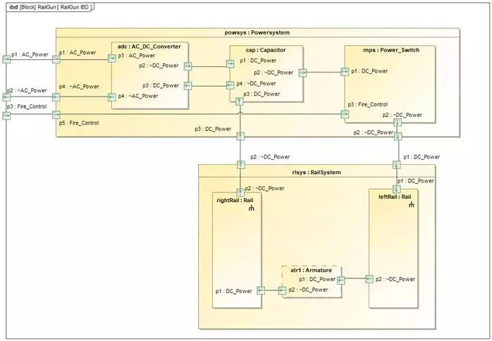 图5 轨道炮输入,内部块图,MagicDraw绘制