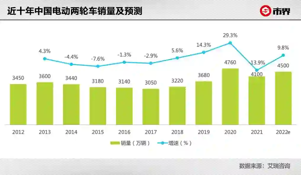 彼时,电动自行车在国内大规模普及。相比摩托车,电动车更轻便、廉价,成为出行新宠。自2004年之后,就迅速挤占市场。截至2007年,我国电动自行车产量突破2000万。到2014年,保有量超过2亿。