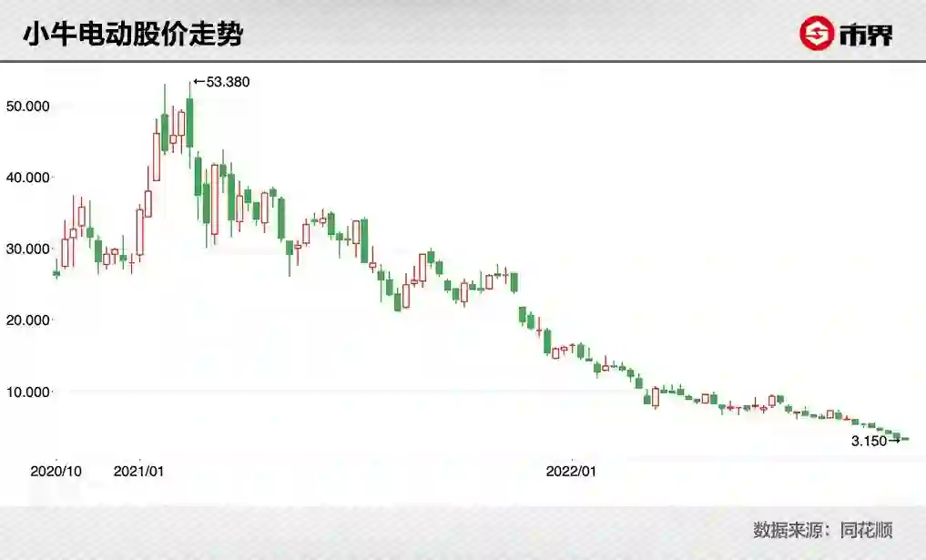 同时,小牛电动车的发展陷入困境。10月12日,业界龙头之一的爱玛科技发布业绩预增公告,在前三季度实现净利润约13.76亿元,同比增长138%。而小牛在10月7日发布的公告显示,第三季度电动车销量同比下降19%。在资本市场,小牛股价近一年跌幅已经逼近90%。