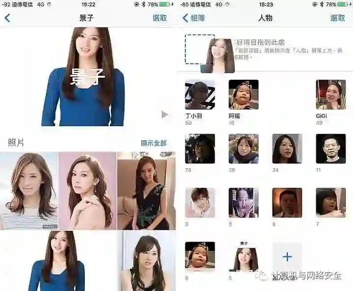 iPhone的照片中有一个“人物”的功能,能够将照片里的人脸识别出来并分类,背后的原理也是人脸识别技术。