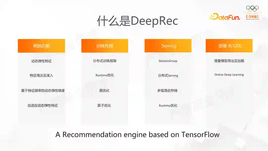 因此我们提出了 DeepRec,其功能定位在稀疏场景做深度的优化。