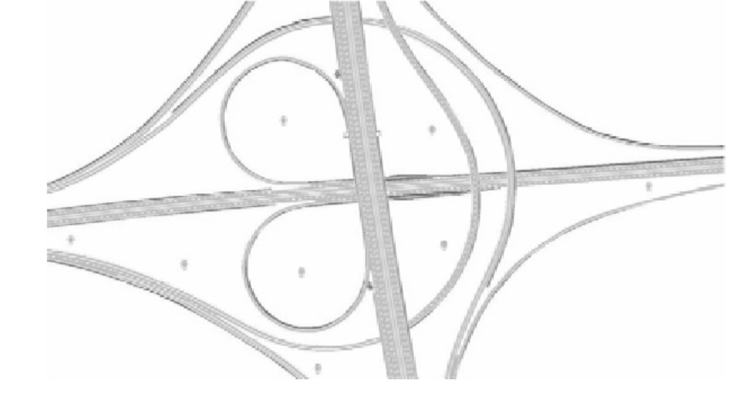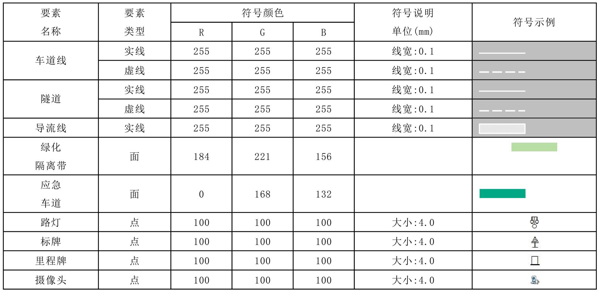 为了使电子地图的色彩协调、符号形象、图面美观,设定了要素显示符号的配图要求(包括要素及注记的样式、规格、颜色等),详见表 1。通过 ArcGIS 地图配置,完成了该项目的车道电子地图的制作,局部示意图见图 4。
