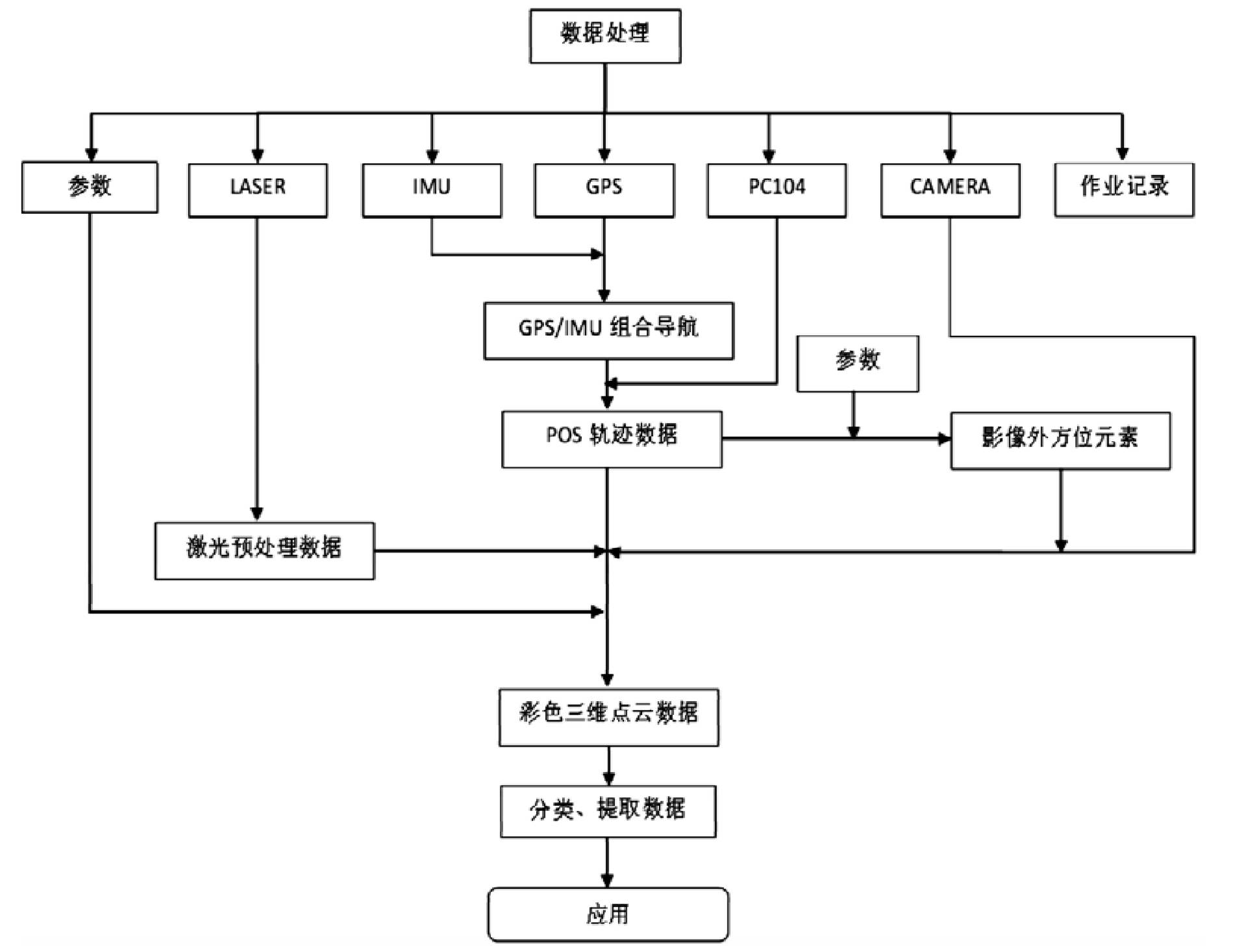 数据采集结束后,需要及时整理和处理数据,以确定数据的有效性。SSW 移动测量车一次作业获取的数据主要包括:激光点云、GPS/IMU 数据、数码影像数据等。数据处理的流程见图 3。
