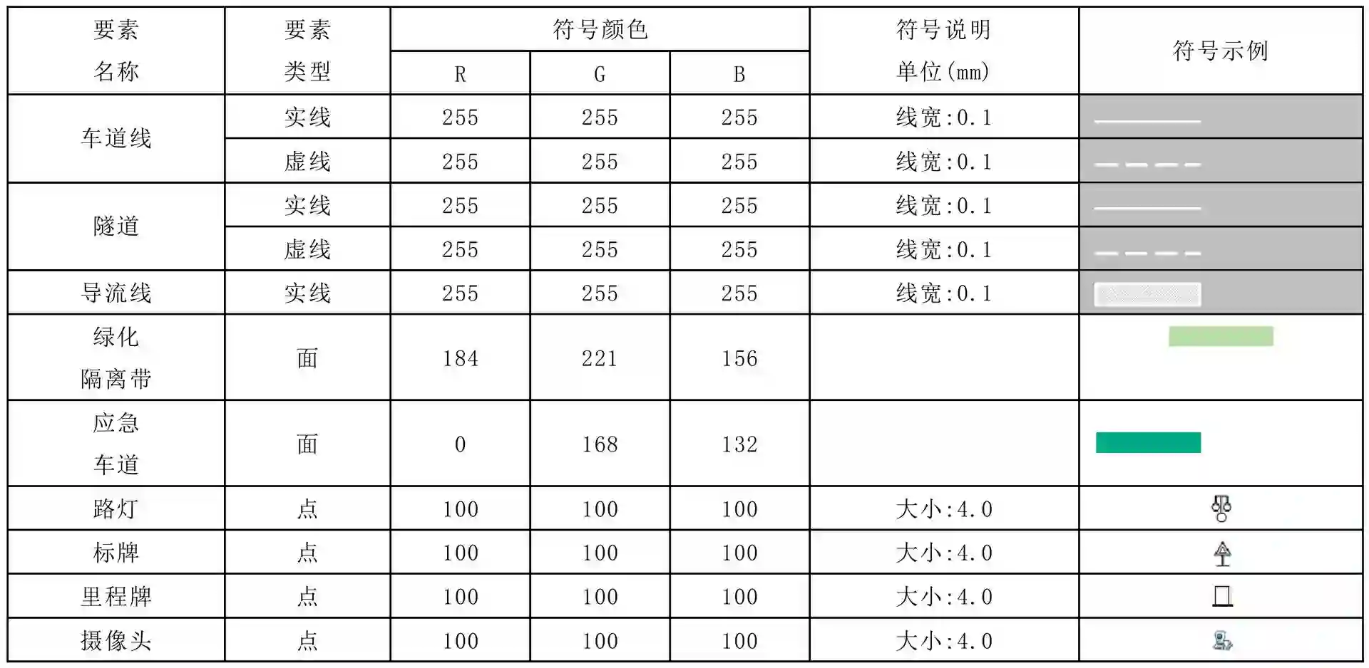 表 1 车道电子地图要素配图示例