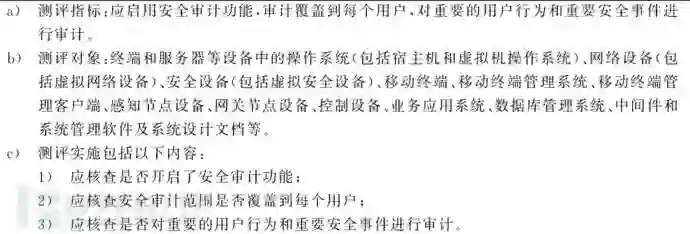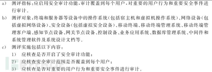 在进行等级保护测评时,需要检查主机的安全审计功能,这里就以等级保护2.0来说一说centos6在这方面的检测,以下是安全计算环境的安全审计控制点中的测评项。