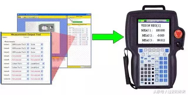 输出测量数值(Locator tool中的”Score/分值“、”Size/比例“,Caliper tool中的”Length/长度“等)至视觉寄存器VR。这些数据可以复制至机器人数据寄存器R并在TP程序中自由调用。