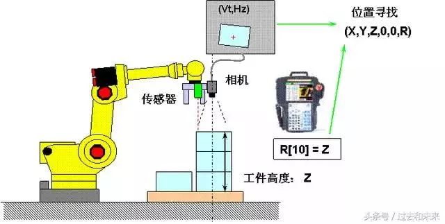 此功能通过视觉计算寻找目标的2D位置和指定的寄存器数值,并引导机器人的运动补偿目标的偏移,不但包括X轴,Y轴和X-Y平面旋转度R,也同时包括Z轴。