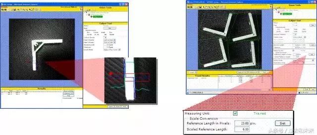 对应指定区域,侦测目标边缘并测量两条边缘间长度(单位:像素pixel),乘以转换因子可以换算为mm。可以对应目标排列及品质检测等应用场合。
