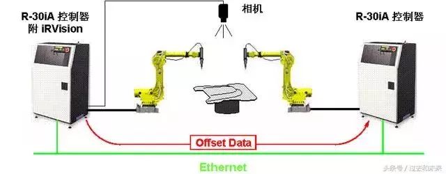通过此功能,未附有 iRVision 视觉系统的机器人可以通过网络调用附有 iRVision 视觉系统的机器人的偏移检测数据。