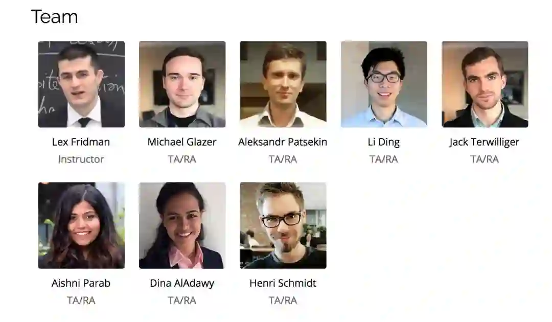 6.S094:自动驾驶汽车的深度学习:这门课程上课时间为两周。第一周,教授首先介绍自动驾驶方面前沿的成就,以及对TensorFlow,GAN等知识点进行介绍。第二周Lex Fridman教授将邀请业界的几位大牛为大家带来精彩的讲座。邀请的大牛分别就职于:Waymo, Lyft, Toyota, Audi, Cruise, NVIDIA。