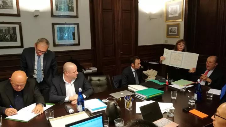 意大利时间2017年9月28日,埃夫特智能装备股份有限公司收购欧洲知名汽车装备和机器人系统集成商W.F.C集团的交割仪式在都灵举行。埃夫特公司执行董事、CTO游玮博士,W.F.C集团创始人Erminio Ceresa先生,集团CEO Fabrizio Ceresa先生及其高管团队等嘉宾共同出席仪式并见证了这一重要历史性时刻。