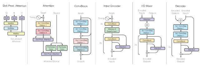 MultiModel 由多个部分构成,比如不同的卷积层、注意力机制和混合专家层。每个部分此前都没有在其他任务上训练过。例如,卷积层此前没有处理过文本或语音任务;混合专家层也没有处理过图像或语言相关的任务。