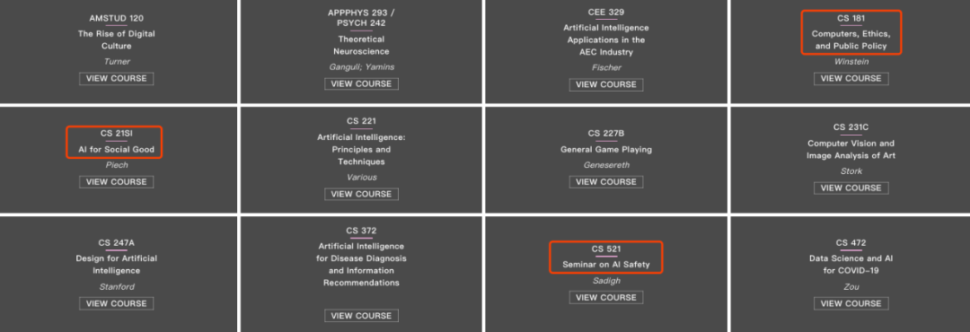 我们做梦都没有想到这个技术的影响会有多大,但是今天我们看到了这些后果。 Azeem Azhar:没错,这是一个非常重要的观察。这让我想起 1959 年 C. P. Snow (英国科学家、小说家)一个著名演讲,叫做《两种文化》。 他讲道,一般的学者是多么了解莎士比亚,却对热力学第二定律一无所知。而知道第二定律或热力学的学者,却对莎士比亚一无所知。如果没有共同的知识,我们就不能用智慧去思考。 如今,你似乎在这两种文化之间架起了一座桥梁。 李飞飞:对我来说,这是个双螺旋,我们认为下一代的学生应该是「双语」的——技术和人文,这两种学科都要学习。 过去几年里,在硅谷有一件事让我印象深刻,那就是年轻的技术专家告诉我,他们没有接受过这样的知识教育。 当他们现在从新闻中听到,甚至看到他们自己公司生产的产品,正面对这些对人类影响的问题时,他们都会感到非常恐惧。他们甚至不知道去思考自己的角色是什么,如何让世界变得更好。 Azeem Azhar:所以我的经验是,尽量别把学生看成研究者,而是把他们看成产品经理、开发者和创业者。 我想给大家介绍一下 HAI 有一些课程,真的是非常科学的。比如知识图、理论神经科学、机器学习和因果推理。然后另一方面,还有算法的政治、伦理学、公共政策、技术变革、数字公民社会、设计人工智能来培养人类的福祉。 在 HAI 课程列表里,不乏 AI 造福社会计算机与安全、道德、公共政策等课程 所以,我很好奇,你有什么创新的方式,来将这两方面很不相干的学科领域结合起来? 李飞飞:我的学生大多是来自计算机科学背景的硕士和博士生。当他们加入到我们 AI 医疗保健团队中时,只有一项基本要求——在讨论代码与算法之前,先融入医护人员的日常生活。 他们需要进入 ICU、病房、手术室甚至是医护人员 / 患者家中,了解这些人的生活方式并跟他们的家人面对面接触。 所以,这只是一个小小的例子。但是 HAI 在各方面都在做这个事情。