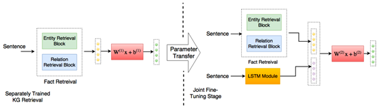 将计算实体和关系表示的模型与文本分类的LSTM模块进行联合训练,联合模型架构如下图所示。